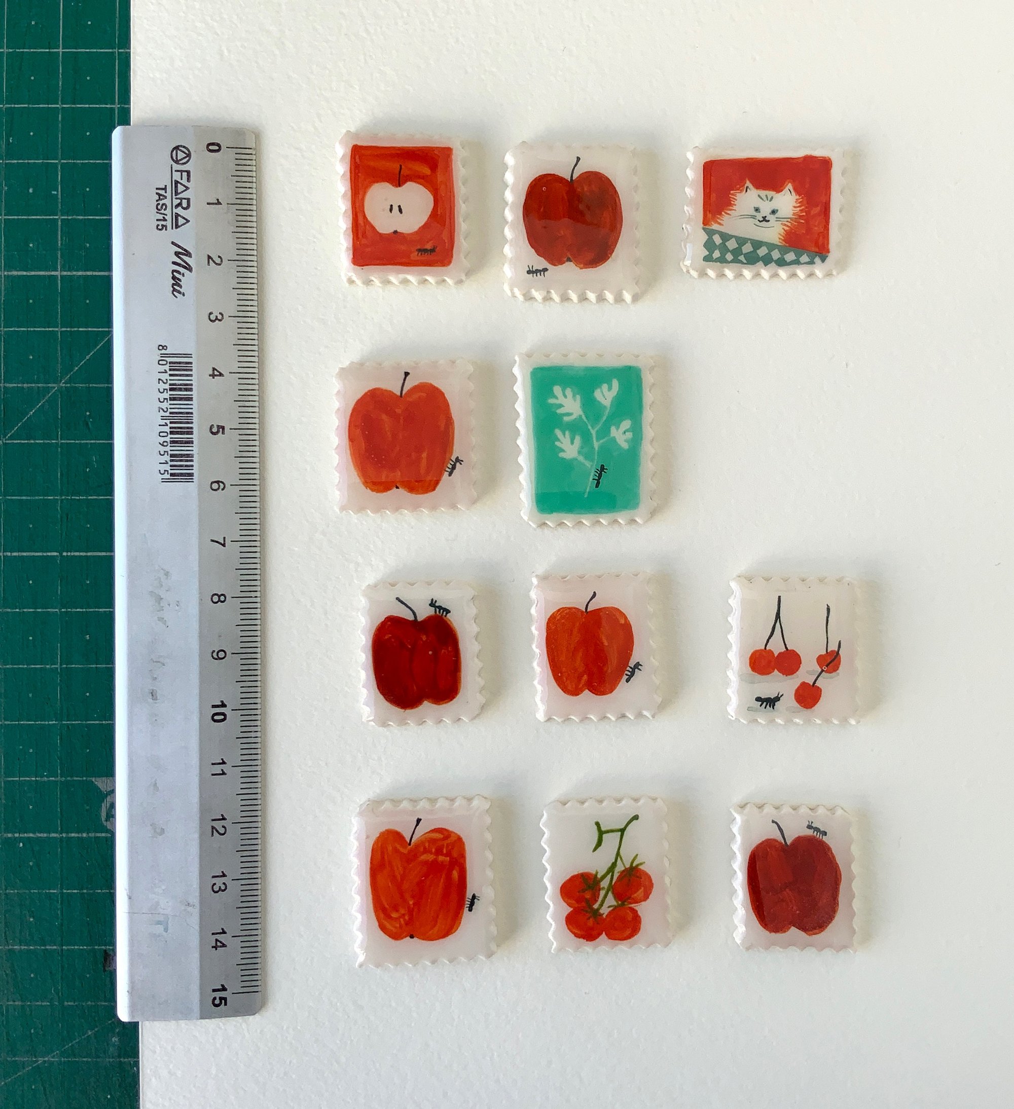 Pin, handmade with polymer clay and handpainted with acrylic gouache.